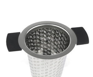 This tea strainer is crafted with robust stainless steel & a round shape to fit most mugs & teapots. Plus, it's rubber-coated so you don't burn your mitts! But what's even better? A stunning leaf-mesh pattern, ensuring that nothing but fine tea gets into your cup. And talk about convenience - the included lid keeps heat & flavor in for the perfect infusion. Flip it over when not in use & it doubles as a coaster!